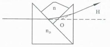 当一束垂直于V棱镜入射面的平行光进入V棱镜后,若被测试样的折射率与V棱镜折射率相同时,光线将不偏折地通过V棱镜,若被测试样的折射率与V棱镜折射率